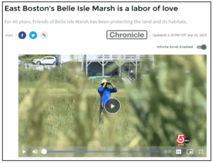 Sept. 27, 2023 – “East Boston’s Belle Isle Marsh is a labor of love” was a feature on Chronicle TV, WCVB/ABC, marking 40 years of