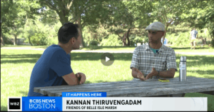 Heather Famico, DCR site supervisor at Belle Isle Marsh and Kannan Thiruvengadam, FBIM board president, interviewed by CBS News Boston “It Happens Here” about Belle